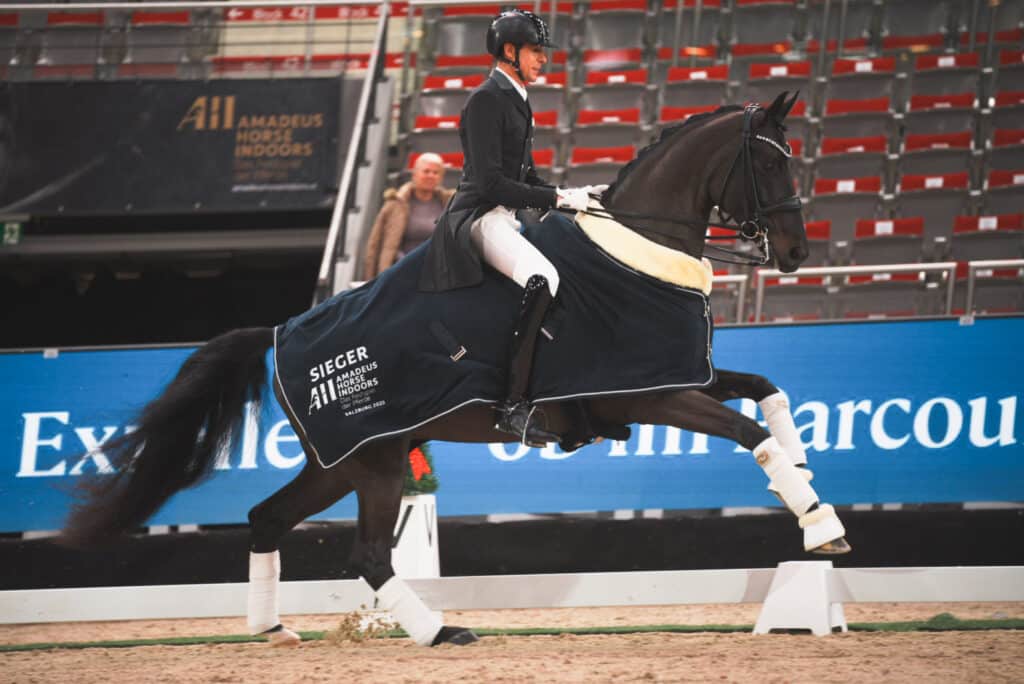 Das AMADEUS DRESAGGE CUP OPENING machte den Auftakt in der Salzburg-Arena, geritten wurde hier im Prix St. Georg um den Preis der LGT-Bank. Thomas Walker (USA) war hier mit der erst 8-jährigen Stute St. Felice und 70.482 % nicht zu schlagen. Inzwischen mit seinem Lebenspartner auf der Anlage von Nicole Louise Ahorner in der Nähe Wiens beheimatet, war ihm die Freude über den Sieg deutlich ins Gesicht geschrieben: „So eine Kulisse ist Feli nicht gewöhnt, aber sie war heute zu 100% bei mir und hat mir absolut vertraut. Wohin uns ihr Talent noch führt, kann ich nicht sagen. Aber ich bin der Familie Ahorner sehr dankbar, dass wir diese Reise zusammen machen dürfen.“ Die Deutsche Kathrin Sudhölter vom Stall Meggle platzierte sich mit Meggle’s Long Island und Meggle’s Fidelio Royal auf den Rängen zwei und drei.