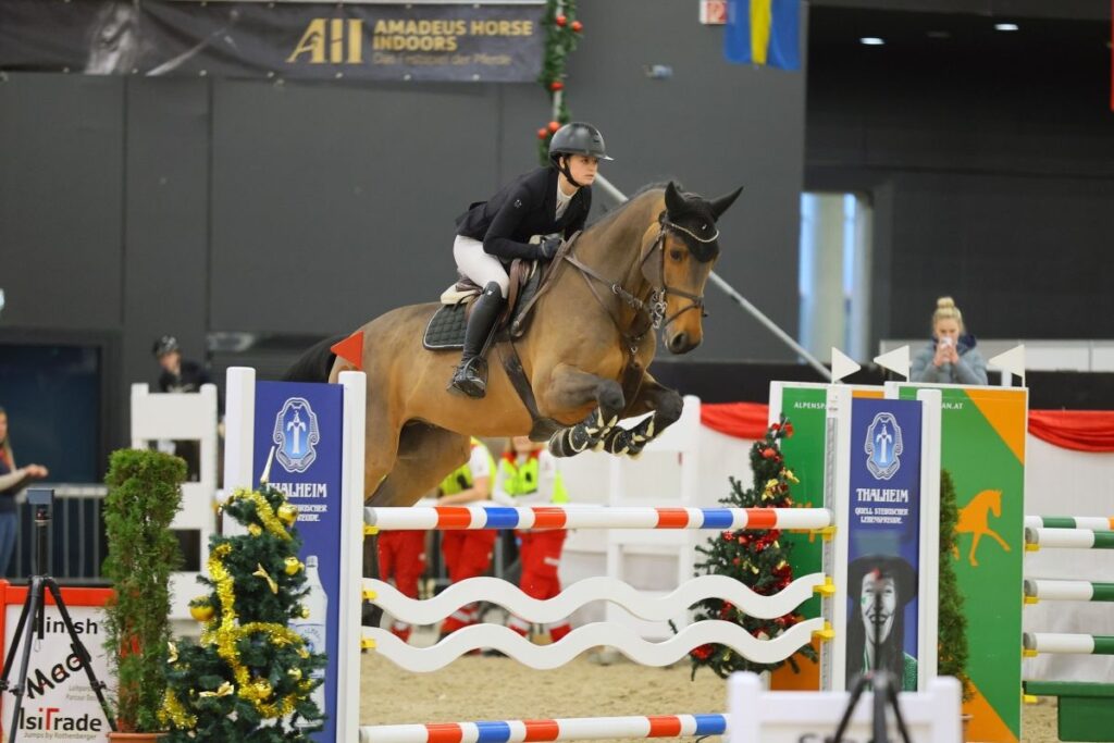 Bei der AMADEUS HORSE JUNIOR TOUR – Masters stellten die jungen Talente ihr Können im Sattel eindrucksvoll unter Beweis. In der internationalen Springprüfung (1.25m) nach Fehler/Zeit, präsentiert von Reitsport Maderer, war Kaja Kropec (SLO) mit GRC Acapella in einer Zeit von 57.41 Sekunden nicht zu schlagen. Damit verwies sie den Deutschen Paul Andrusch mit Miss Scendix van de Hertenrode (0/63.30 sec) auf Platz zwei. Als beste Österreicherin galoppierte Raphaela Weixelbraun mit Baloutano, einem 12-jährigen Baloubet du Rouet-Sohn und einer fehlerfreien Runde in 64.16 Sekunden auf den dritten Rang. Raphaela, aus einer typischen Pferdefamilie stammend und Schwester von „Rookie of the year“ Antonia Weixelbraun, erzielte bereits einige Platzierungen auf internationalem Parkett in diesem Jahr.