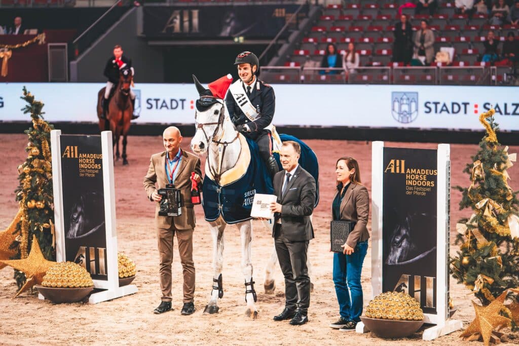 Im CSI4* ging es Schlag auf Schlag – in der sehr gut gefüllten Salzburgarena setzte das AMADEUS CHAMPIONAT VON SALZBURG – powered by Stadt Salzburg – am Freitagabend einweiteres Highlight für alle Springfans. Mit einer Gesamtdotation von € 57.000, – und einer Hindernishöhe von 1,55m galt es 16 Sprünge in der erlaubten Zeit von 67 Sekunden zu überwinden. Für die besten zwölf Teilnehmer des 48-köpfigen Starterfeld ging es in die Siegerrunde, einem verkürzten zweiten Parcours, in der die Fehlerpunkte aus der ersten Runde mitgenommen wurden.