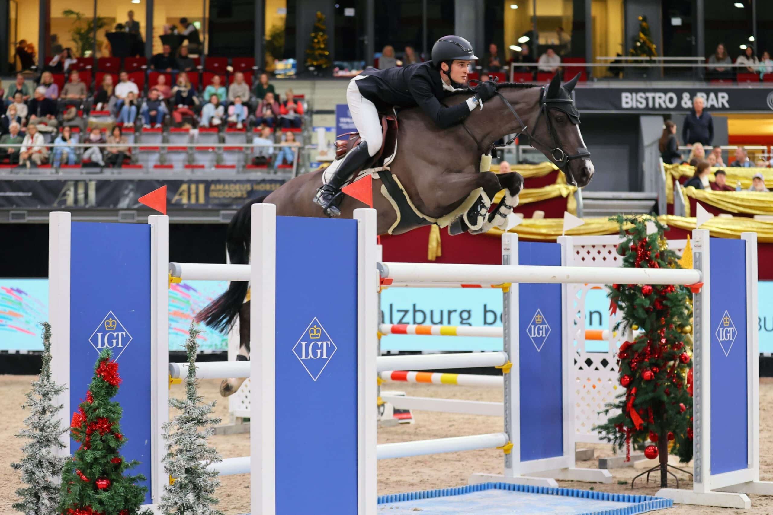 Bester Österreicher in dieser Prüfung war der in Deutschland lebende Oberösterreicher Felix Koller, der mit seiner schon erfahrenen 12-jährigen Holsteiner Stute Cossinelle, mit der er erst seit drei Monaten ein Paar ist, eine sehr souveräne und stilistisch ansprechende Runde zeigte. Ein Abwurf am zweiten Sprung verhinderte leider einen Einzug ins Stechen und somit die Chance auf den Sieg. Der Vize-Europameister der Young Rider 2018 und Amadeus Rookie of the Year 2017 zeigte sich von der Atmosphäre in Salzburg begeistert und präsentierte sich während des gesamten Turniers in starker Form. Über seine neue Sportpartnerin findet er in seinem Resümee nur lobende Worte: