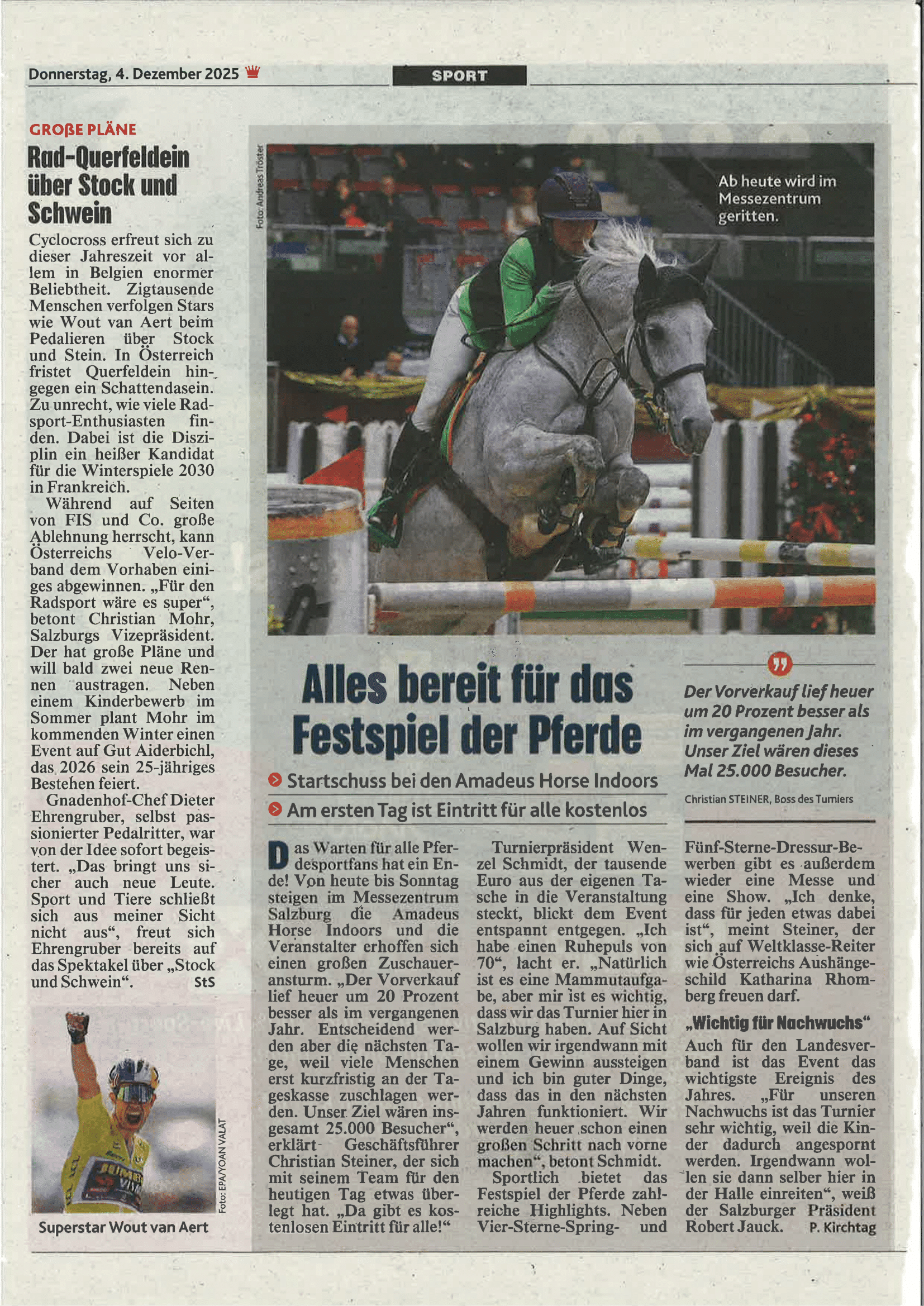 Emotionale und sportliche Höhepunkte in Salzburg Nach vier Tagen voller emotionaler Höhepunkte und sportlicher Topleistungen verabschiedet sich das Team der Amadeus Horse Indoors mit einer lang ersehnten Nachricht: Das Turnier,